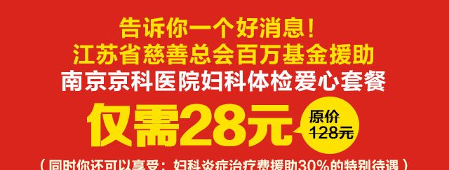 医生解答:由于个人身体情况不同,妇科检查所要做的项目也有差别,因此产生的费用也有所不同。南京妇儿堂医院妇科体检爱心套餐仅需28元(原价128元)。