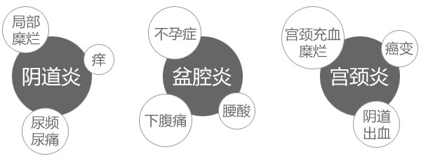 ③ 性生活疼痛、出血,腰酸腹痛、有坠胀感。
